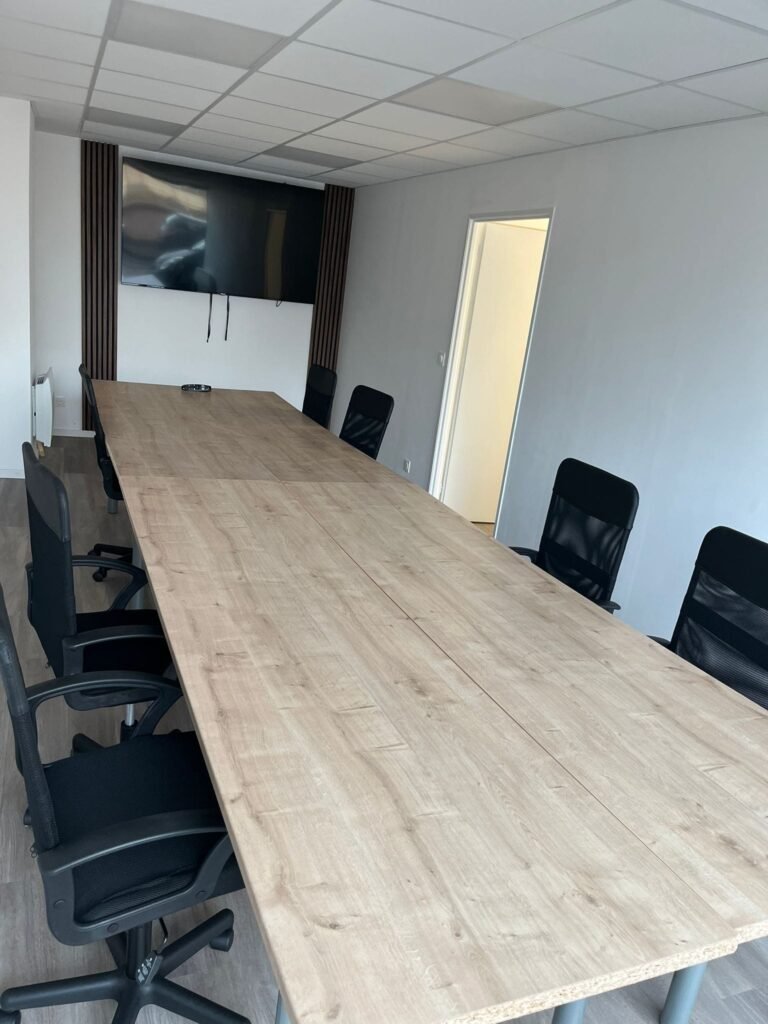 Notre salle de réunion peut accueillir jusqu’à 15 personnes, ce qui la rend idéale pour vos conférences, formations ou présentations.